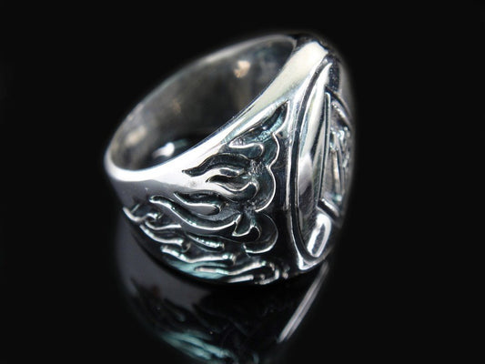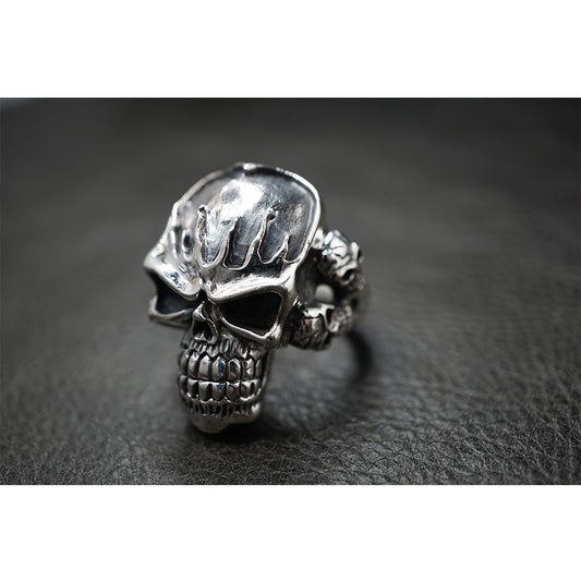 Fire Flame Skull Ghost Rider 925 Sterling Silver Ring Sr34