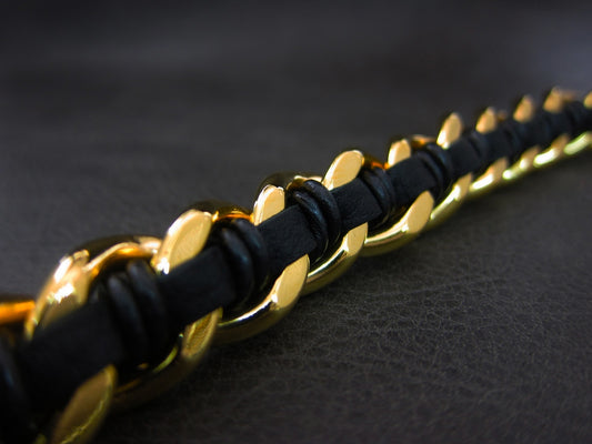Luxury Gold Skull Black Leather Chain Bracelet Tb173