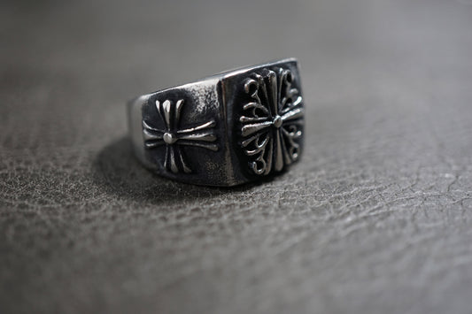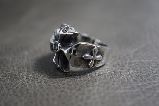 Classic Silver Gothic Cross Hard Ring with Black Crystal Tr98